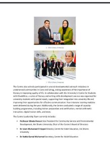 ذكرت النشرة الدورية لكرسي اليونسكو لتعليم الكبار، إضاءات جهود مركز تعليم الكبار جامعة عين شمس، لتؤكد تنوع مجالات العمل وتشير لتميزه.