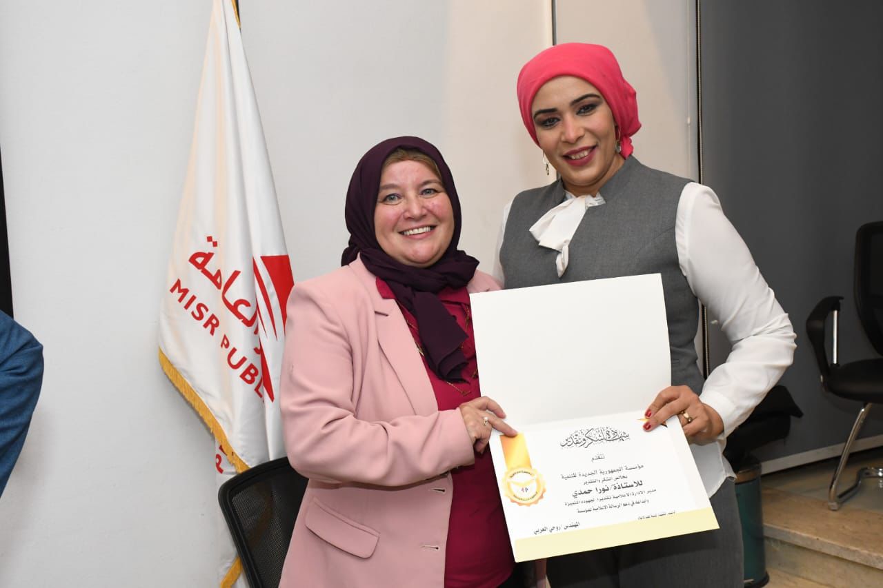 وشهدت الجلسة تكريم أعضاء الهيئة العليا للإعلام بالمؤسسة: د. هاني الديب، نورا حمدي، ولاء مقدام، شيماء صادق، محمد عبد الغني، حامد خليفة، وذلك بحضور الدكتورة أماني فؤاد عضو مجلس الأمناء ممثلة عن المهندس روحي العربي، إلى جانب الدكتورة رانيا لاشين، تقديرًا لجهودهم في دعم الرسالة الإعلامية والثقافية للمؤسسة.